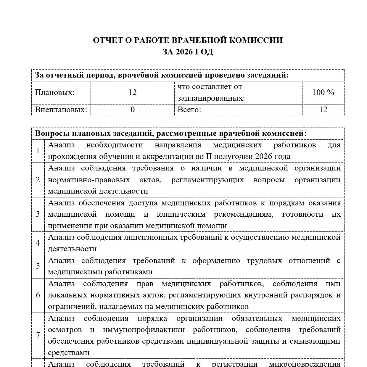 — 4 квартальных отчета врачебной комиссии за 2026 год