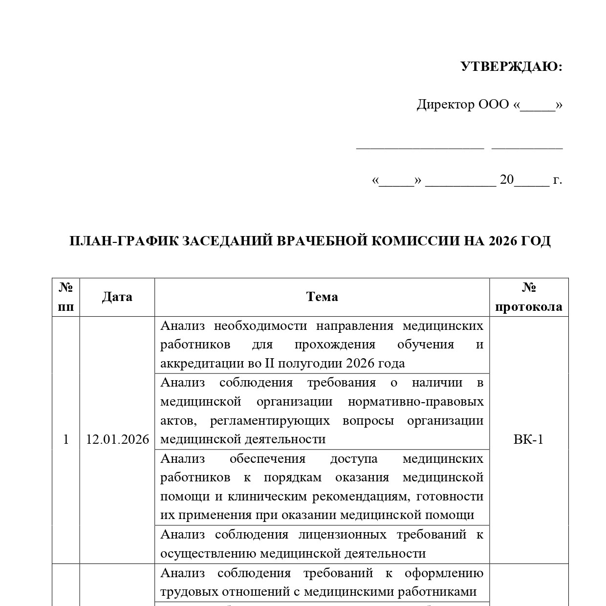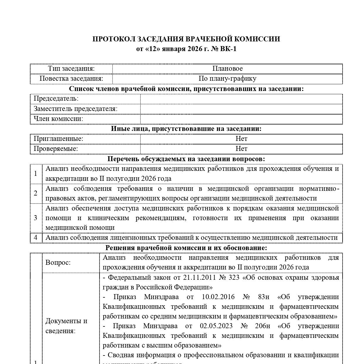 Набор готовых протоколов заседания врачебной комиссии за 2026 год