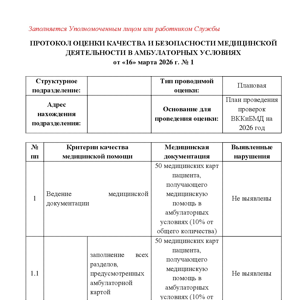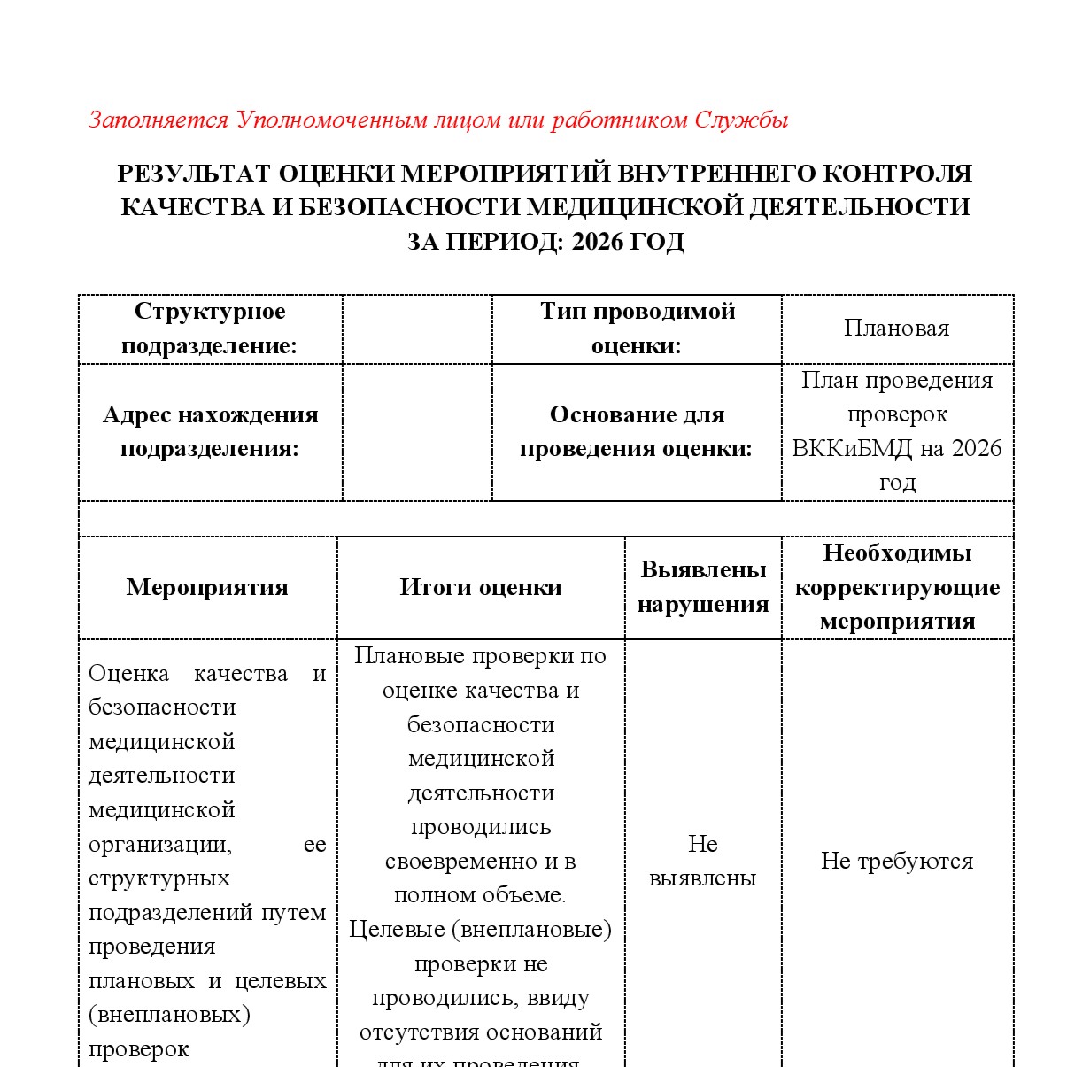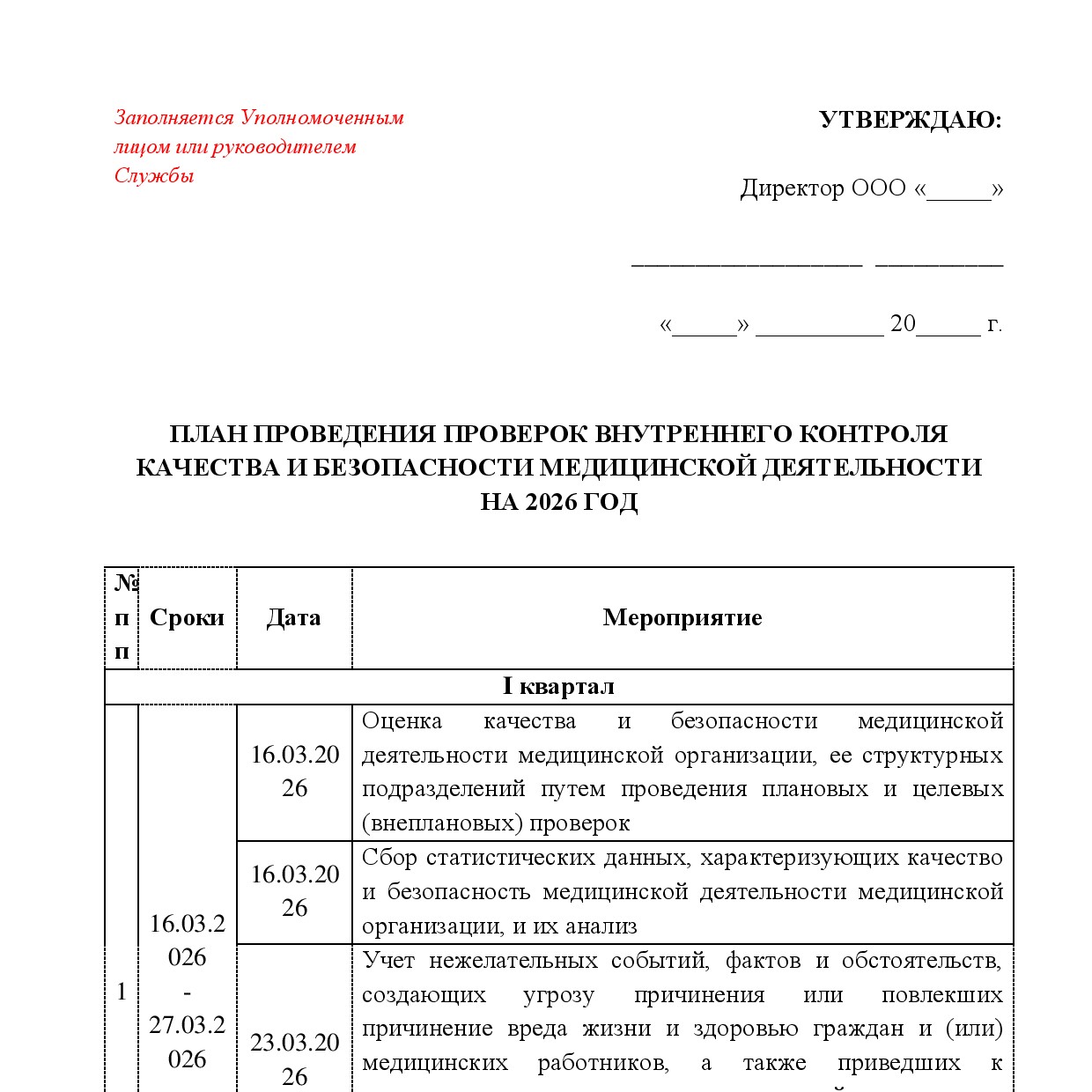 Набор готовых протоколов по внутреннему контролю качества и безопасности медицинской деятельности (ВКК) за 2026 год